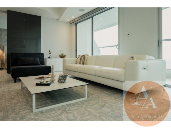 Ubicado en el piso 36, este apartamento ofrece una vista panorámica única al mar Caribe y la ciudad amurallada de Cartagena. Totalmente remodelado con diseño moderno, espacios abiertos y acabados de primera categoría.